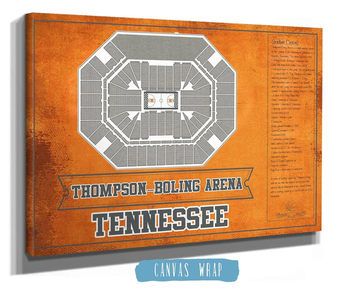 Thompson–Boling Arena - Tennessee Volunteers, Lady Vols NCAA College Basketball Blueprint Art