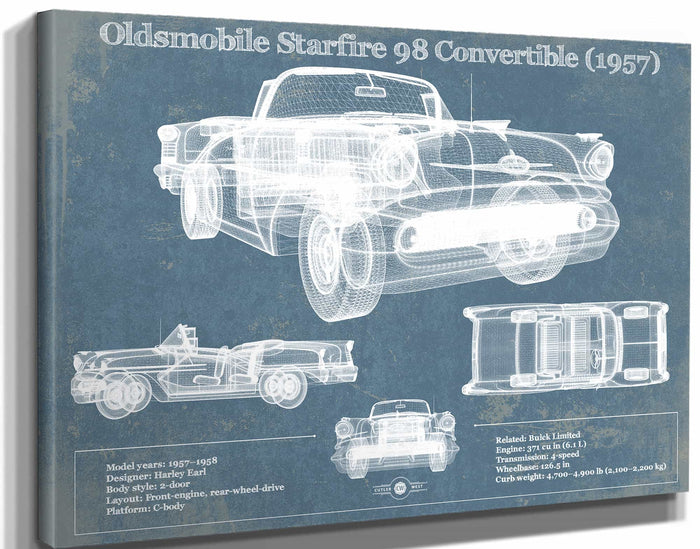 Oldsmobile Starfire 98 Convertible (1957) Blueprint Vintage Auto Print